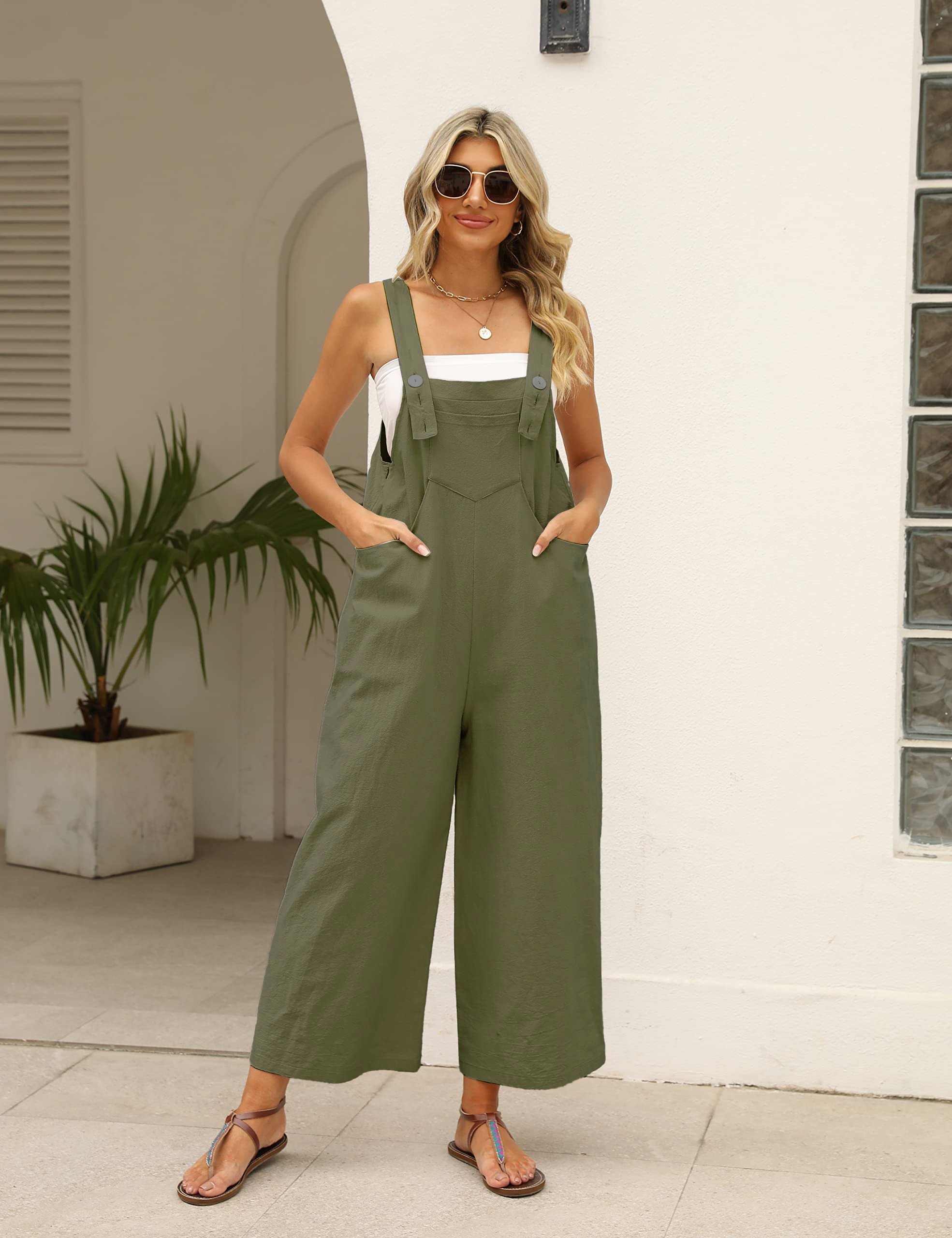 Women's Summer Cotton Linen Overalls – Adjustable & Relaxed Fit Jumpsuit